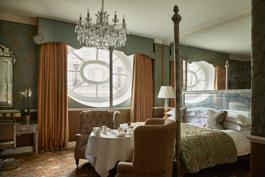 Guests may venture to nearby Bond Street, The Royal Academy, Buckingham Palace, the Royal Parks, and more, then stroll back to The Chesterfield for the creative and award-winning afternoon tea – not your typical tea, this one includes a few delightful surprises, like Coca-Cola cake and smoking pink lemonade. Later, savor some of the best Dover sole in London at Butlers Restaurant and theatrical cocktails or gin and whisky-tasting experiences at the cozy Terrace Bar. All 93 guest rooms and 13 luxurious suites are flooded with personality and filled with artwork and antiques personally chosen by Red Carnation founder Bea Tollman and her daughter Toni. The youngest guests (and four-legged friends) are met with fanfare at The Chesterfield, treated to their very own check-in and little extras like mini-sized bathrobes and slippers, doggie treats, and walks in the Royal Parks.